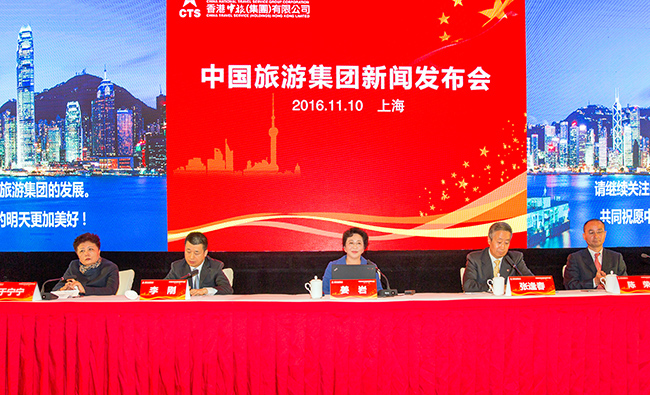 11月10日,在首次亮相上海國(guó)際旅游交易會(huì)前夕,中國(guó)旅游集團(tuán)在上海浦東星河灣酒店召開(kāi)新聞發(fā)布會(huì),向媒體詳細(xì)解讀了未來(lái)發(fā)展戰(zhàn)略、目標(biāo)愿景、重點(diǎn)舉措等。中央電視臺(tái)、鳳凰衛(wèi)視、路透社、光明日?qǐng)?bào)、經(jīng)濟(jì)日?qǐng)?bào)、中國(guó)日?qǐng)?bào)、工人日?qǐng)?bào)、人民日?qǐng)?bào)海外版、中國(guó)青年報(bào)、環(huán)球時(shí)報(bào)、中國(guó)旅游報(bào)、新華網(wǎng)、人民網(wǎng)、搜狐、新浪、騰訊、網(wǎng)易、東方網(wǎng)、中國(guó)旅游網(wǎng)等50余家全國(guó)和各地主流媒體參加了發(fā)布會(huì)。